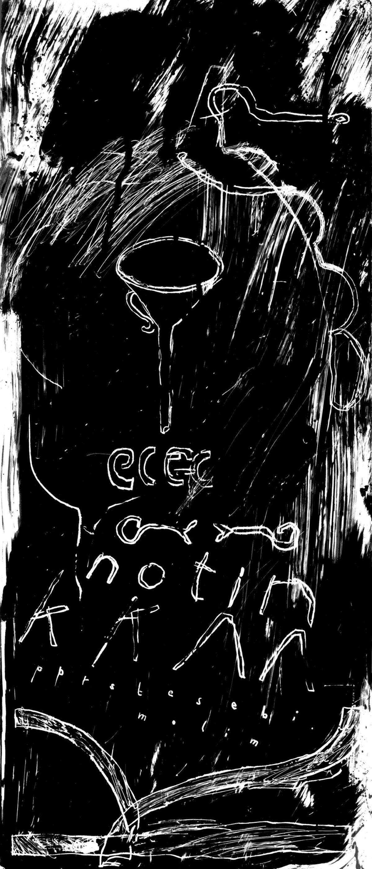 Through a site-specific body of work created within the Takeover 2026 project for the architectural studio SKUP-A, I explore the idea of the collective (un)conscious embodied in space. The work develops from my previous research into ancestral inheritance, drawing on C. G. Jung and his key theory of the collective unconscious and archetypes. The idea of thresholds/boundaries in a given space arises from the impulse to reset patterns of thinking. Through minimal and unobtrusive interventions, the work creates a subtle shift in how the space is perceived through everyday rituals of movement and work. A series of three drawings, created through intuitive gesture and translated into window vinyls, emphasizes the visual and physical division between two different workspaces. Within my artistic practice focused on printmaking, the cultivation of repetition and multiple originality is manifested in an installation of oiled Japanese paper, symmetrically placed and shaped as a double image mirroring itself. The cutting of a cross shape and its restorative stitching points to an act of annulment, once again emphasizing repetition. The Greek cross symbol is a recurring motif in my work; with each new use and repetition, its meaning is deconstructed and re-established.