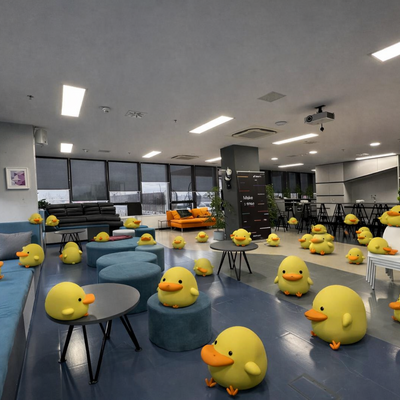Soft Takeover is a spatial intervention in which a corporate office space is gradually occupied by soft, plush objects and characters that act as passive yet persistent agents of change. Instead of aggressive transformation, the work introduces a logic of infiltration through softness, repetition, and presence. Plush objects function as a kind of “emotional parasites” or corporate mascots, distributed throughout the space in a way that imitates everyday use but subtly destabilizes it. The intervention questions the relationships between labor, comfort, control, and aesthetics within the contemporary office environment.