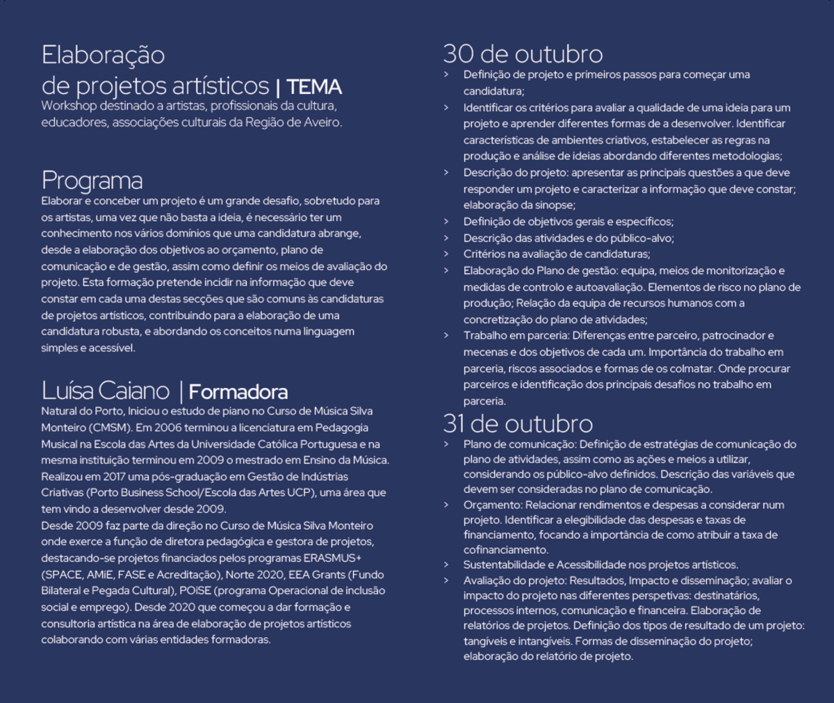 CreArt WORKSHOP IN AVEIRO "PREPARATION OF ARTISTIC PROJECTS" / 30 AND 31 OCTOBER