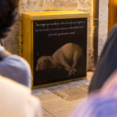 Atrio Calle Santiago: cuadro eléctrico "Evocart. Evocando a los artistas locales" por colectivo Tuttifrutti (Ephemera Phestival 2022)