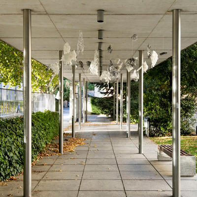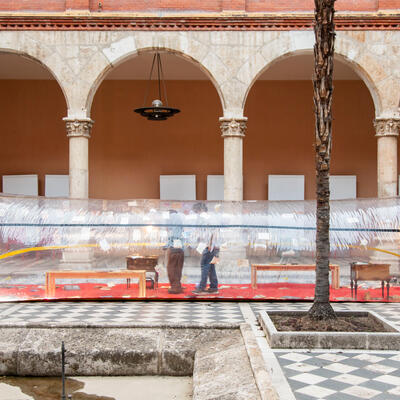 Para esta edición, los proyectos site-specific efímeros cobran protagonismo con los trabajos de Ratpilot, Oihan, Lara de la Puente y la artista lituana invitada a través del proyecto CreArt 3.0, Ruta Simutyte. Piezas escultóricas o audiovisuales que podremos disfrutar en las rutas guiadas programadas para los días 26 y 27 por la tarde (más información al final del dossier). La estructura Hinchables de Ratpilot, creada a partir de materiales plásticos reciclados crearán juegos visuales y artísticos en el patio de la Biblioteca de Castilla y León (inauguración en Galerías VA). Mientras, la artista textil, Ruta Simutyte nos presentará Heaven, una selección de objetos textiles biomórficos en el escaparate de Bang & Olufsen y la marquesina de entrada de Museo Patio Herreriano. La conexión emocional entre el ser humano y la naturaleza es importante para ella, por lo que basa su trabajo en el hygge danés, las filosofías wabisabi japonesas y las teorías de la psicología ambiental y evolutiva, que enfatizan la importancia de la naturaleza y la luz en la vida cotidiana.