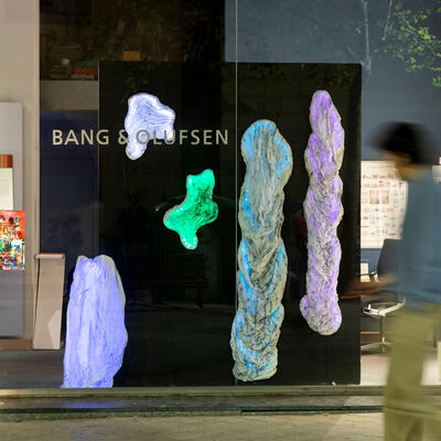 Ruta Simutytè I Escaparate Bang & Olufsen y marquesina entrada Museo Patio Herreriano