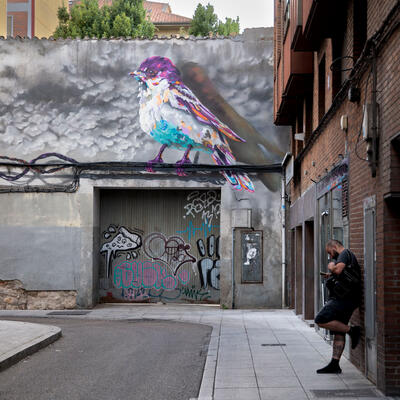 Por último, este año contaremos en Ephemera con intervenciones murales por parte de Rage (Valladolid, 1983), Martí Sawe (Barcelona 1986), y Aches (Dublin, 1992). Unnoted de Rage en Calle Gardoqui representará un gorrión en primer plano posado sobre el cableado del tendido eléctrico de la fachada, pasando inadvertido en este lugar recóndito y escondido de la ciudad, sin apenas hacer ruido y sin que le vean, tratando de buscar el diálogo y la interrelación con el viandante inquieto y curioso que se fija en ciertos detalles de las calles que otras personas y vecinos de la ciudad apenas muestran un mínimo de interés. (Pendiente de confirmar piezas de Aches y Martí Sawe en Rondilla)