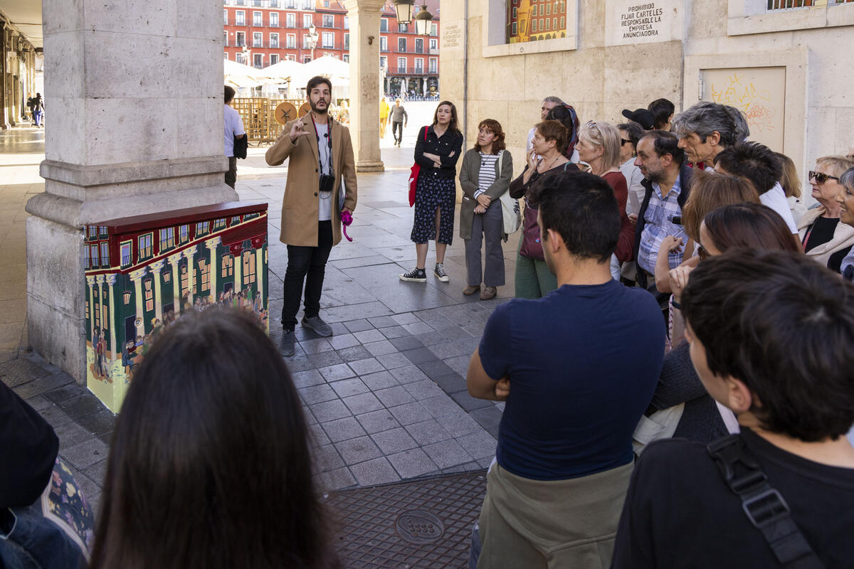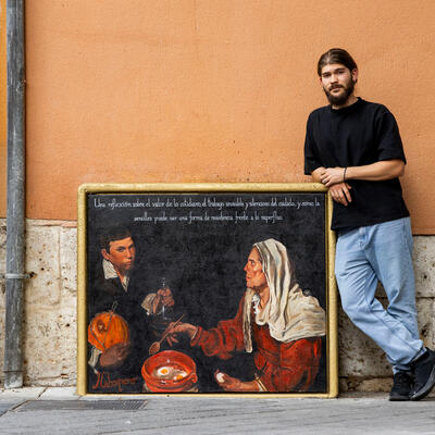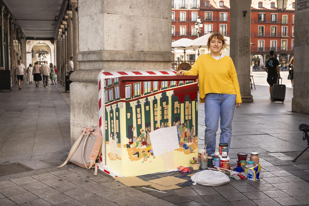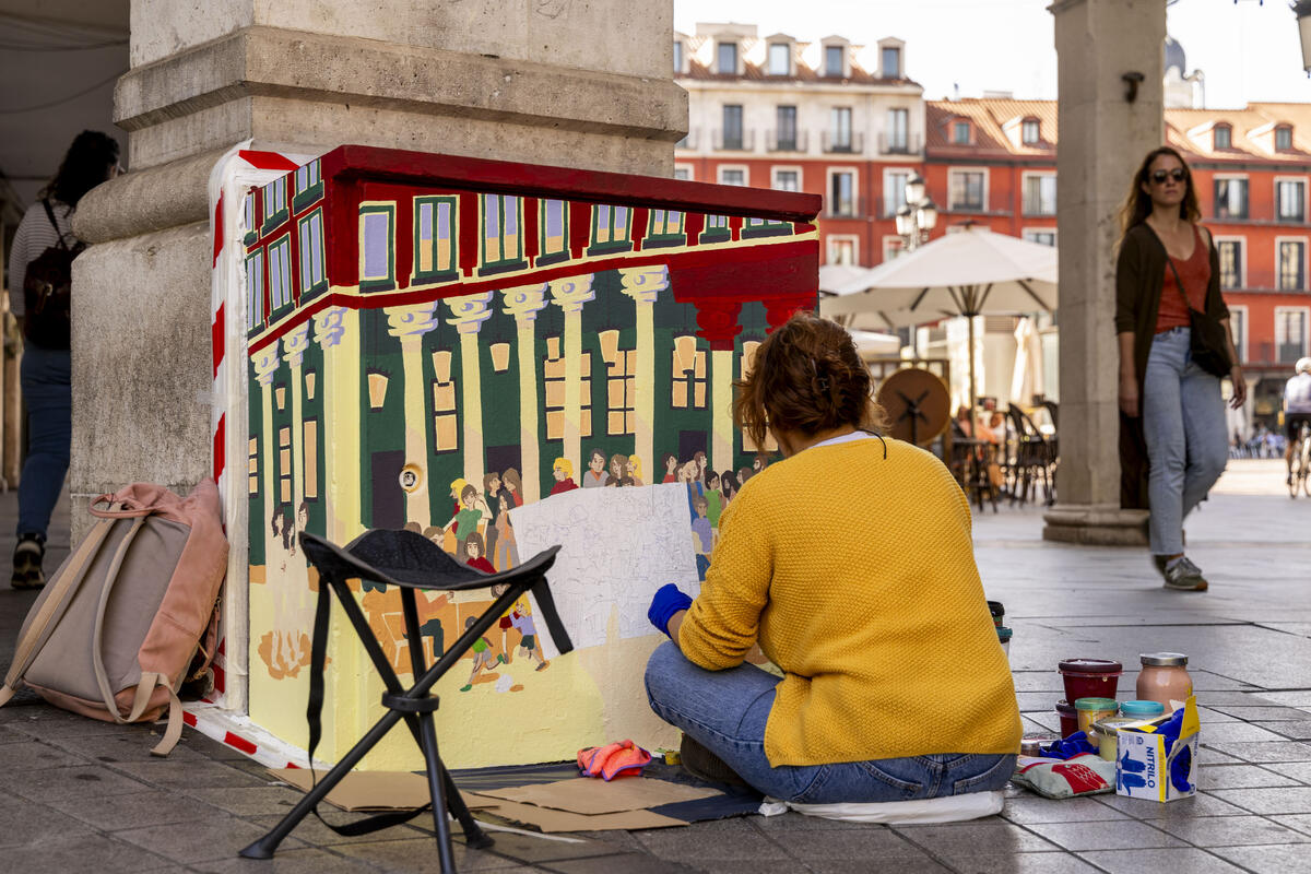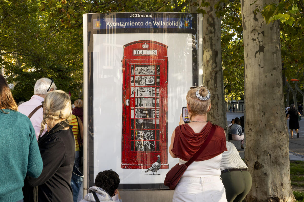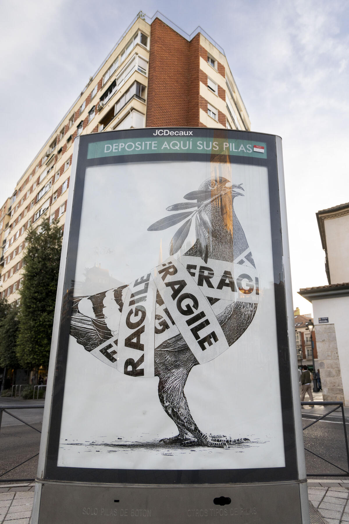 Arrancaremos #EphemeraPhestival2025 a partir del lunes 15 de septiembre, con las intervenciones sobre mobiliario urbano por parte de los creadores vallisoletanos Carolina Medina (Crayolina Ilustración), Celia Gallego y Juan Cabornero, en las cajas de alumbrado público que quedarán para la posteridad como cuadros de gran formato a pie de calle, mientras en los mupis de publicidad contaremos con el trabajo del ilustrador barcelonés afincado en Londres, Gregori Saavedra. Celia Gallego nos presenta en dos rincones de Acera Recoletos y Calle Gamazo, Identidades colectivas: rostros fragmentados que nos hablan de la identidad múltiple que se forma en el contacto con el otro. Sus figuras son mapas emocionales de una ciudad viva, compartida y en constante transformación. Por su parte la ilustradora chilena afincada hace poco en Valladolid, Carolina Medina, más conocida como Crayolina Ilustración, nos dejará en Plaza del Corrillo su retrato de los soportales de Plaza Mayor, bajo la mirada fresca de una recién llegada a la ciudad (Valladolid en blanco, negro y colores). Entre luces y sombras, la propuesta de Juan Cabornero para las cajas de luz de Calle Concepción y Andrés de la Orden trasladará el arte barroco al espacio público para interpelar nuestra mirada cotidiana. A través de la recreación de pinturas Velázquez y Zurbarán y frases, Cabornero propone una pausa ética y emocional en medio del ritmo urbano. Por último contaremos con el trabajo del ilustrador Gregori Saavedra con cuatro piezas en los mupis publicitarios que buscan diálogo en lo efímero. Mercado Salvaje enfrenta la violencia del comercio ilegal de animales; El Principio de Heisenberg se adentra en la incertidumbre que define nuestro tiempo; Transmutación observa la metamorfosis de lo obsoleto; y Frágil recuerda que la paz, siempre prestada, puede quebrarse al menor descuido. Cuatro miradas distintas, reunidas en un festival que convierte lo transitorio en memoria.