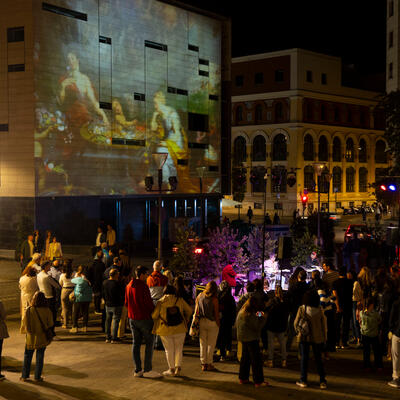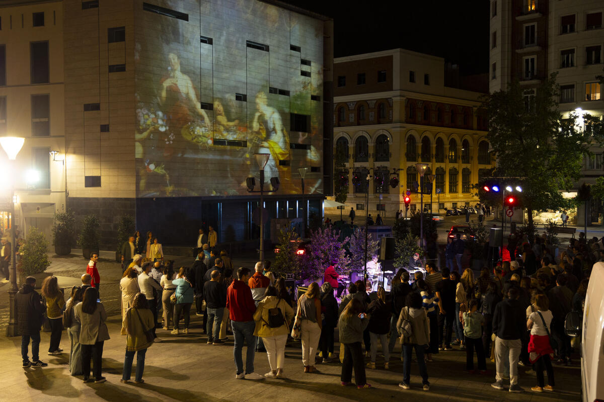 La fachada de VIVA en C/ San Benito acogerá las proyectos Vecinos de Lara de la Puente y Domar la Luz de Oihan. “Vecinos” se concibe como un videomapping participativo a modo de collage colectivo de microhistorias que reflexionarán sobre la tensión entre soledad y comunidad en la ciudad. El proyecto Domar la Luz, tiene como inspiración la sinestesia entre la luminosidad que recibimos, y cómo nos expresamos en torno a ella, y a través de la interacción entre las imágenes en vídeo directo y la música como premisa, sumando el entorno urbanístico a la ecuación.