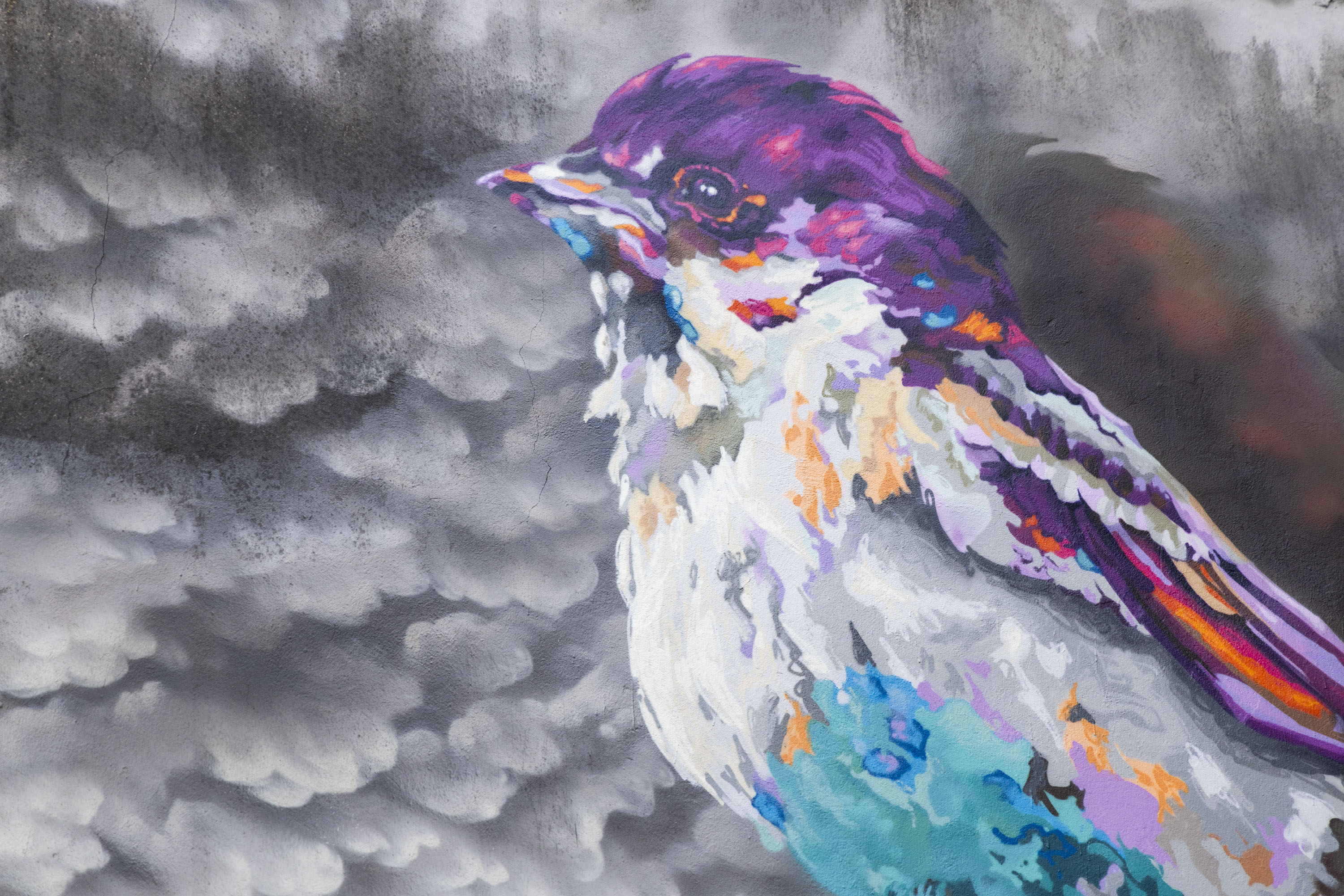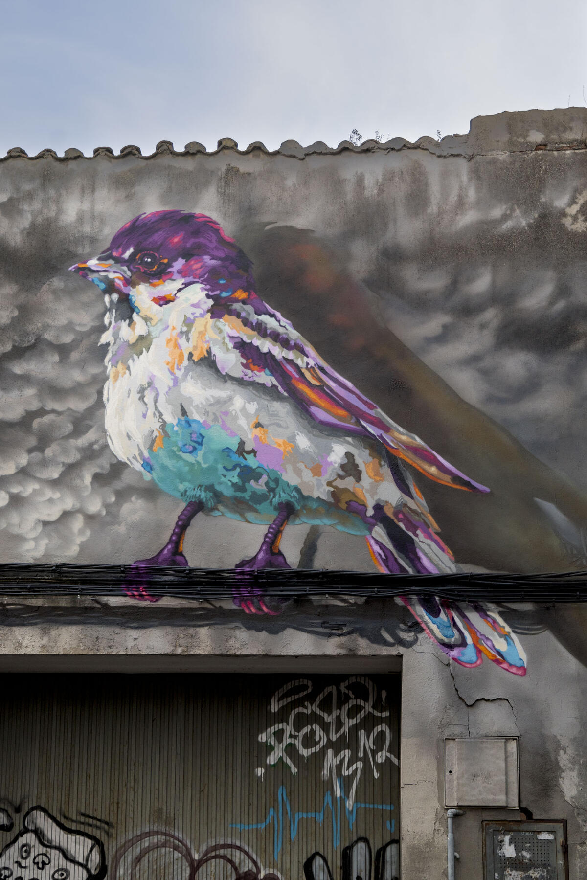 La idea principal es representar a un gorrión en primer plano posado sobre el cableado del tendido eléctrico de la fachada, pasando inadvertido en este lugar recóndito y escondido de la ciudad, sin apenas hacer ruido y sin que le vean, tratando de buscar el diálogo y la interrelación con el viandante inquieto y curioso que se fija en ciertos detalles de las calles que otras personas y vecinos de la ciudad apenas muestran un mínimo de interés. Además, la propuesta representa elementos que se añaden al muro formando un conjunto estético respetando el resto de mundos existentes (graffiti, tags, parches de pintura plástica y el propio deterioro del muro